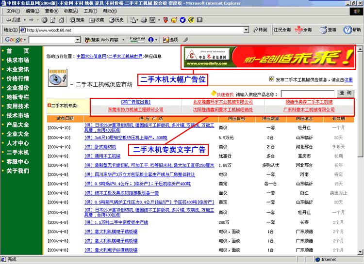 中國木業(yè)信息網(wǎng)二手木機(jī)市場廣告尺寸及位置示范