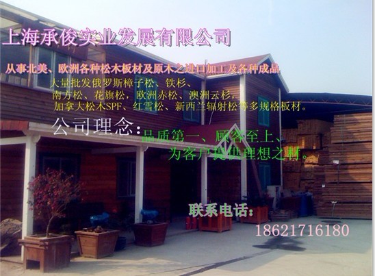 | 上海承俊實(shí)業(yè)發(fā)展有限公司成立于2008年,經(jīng)過(guò)幾年的不斷發(fā)展倉(cāng)庫(kù)面積占地30000M2.專業(yè)從事北美、歐洲各種松木板材及原木之進(jìn)口加工及各種成品,大量批發(fā)俄羅斯樟子松、鐵杉、南方松、花旗松,歐洲赤松、澳洲云杉,加拿大松木SPF、紅雪松、新西蘭輻射松等多規(guī)格板材!读碛袀}(cāng)庫(kù),太倉(cāng)港,龍吳港》 供應(yīng)國(guó)內(nèi)眾多大型家具沙發(fā)木制品企業(yè),木門材料、包裝材料,防腐材料,園林綠化公司及木材貿(mào)易企業(yè)公司的長(zhǎng)期穩(wěn)定供應(yīng)商。 另及市場(chǎng)大量需求并開發(fā)木材防腐部門:專業(yè)從事防腐木生產(chǎn)、銷售;戶外木結(jié)構(gòu)景觀設(shè)施;大型木結(jié)構(gòu)建筑及高檔住宅戶外的木裝飾、木制品的設(shè)計(jì)、小區(qū)景觀、木結(jié)構(gòu)獨(dú)立式住宅、(別墅)制作。 公司理念:品質(zhì)第一、顧客至上、為客戶提供理想之材。 |