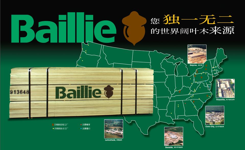 | Baillie Lumber是北美最大的硬木生產(chǎn)商,經(jīng)銷商,和硬木原木,板材及板材制品的出口商之一。自1923年 James A. Baillie 成立公司以來,我們已經(jīng)由一個地區(qū)性的供應(yīng)商成長為一個在世界各地?fù)碛杏材举Y源的全球性的硬木生產(chǎn)商。Baillie的北美硬木生產(chǎn)基地由北至南分布在美國東部。我們在美國本土和世界各地都有協(xié)力工廠和供應(yīng)商,他們可以提升我們的生產(chǎn)能力,并且為我們提供廣泛的樹種資源。 |