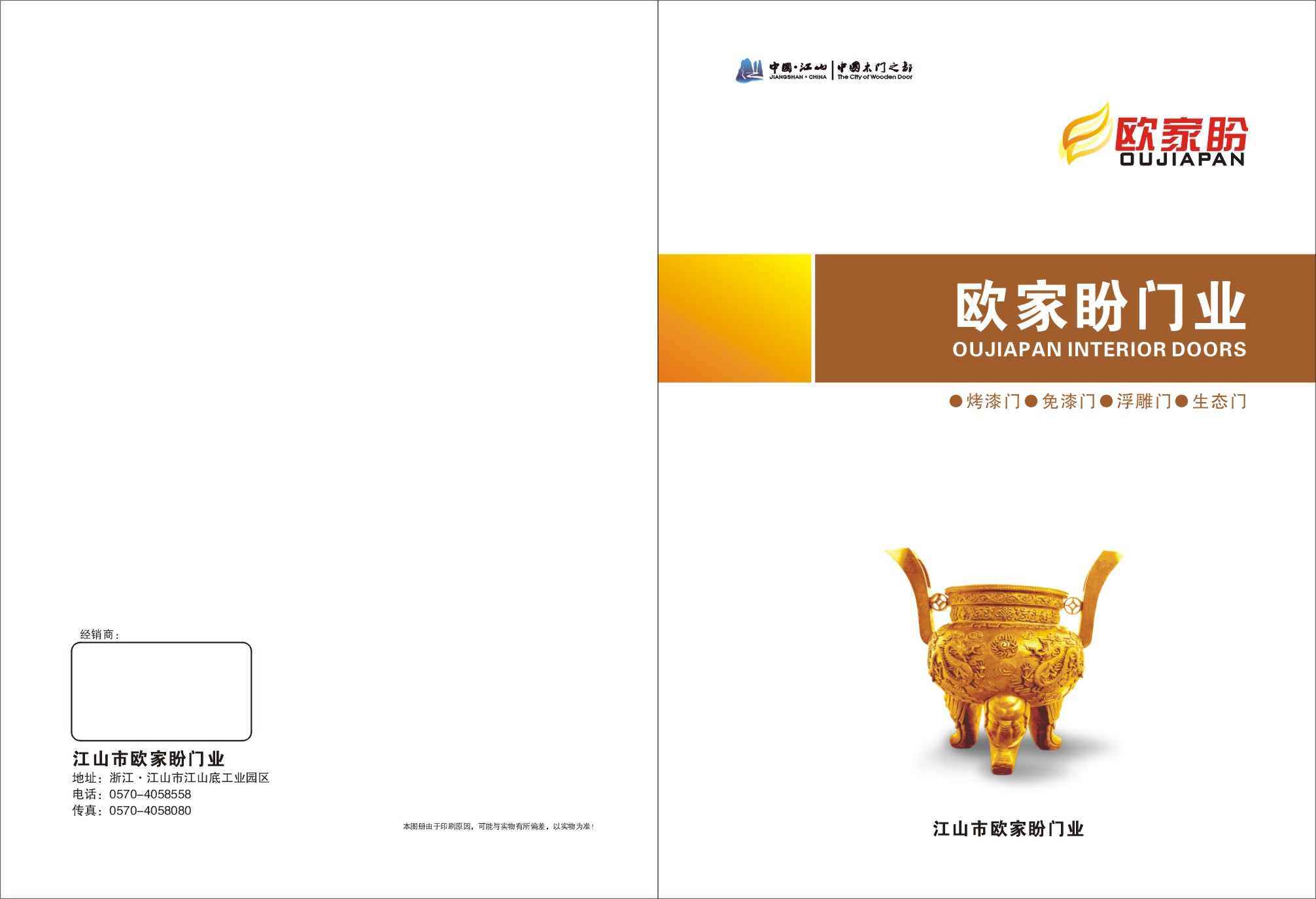 | 浙江歐家盼裝飾材料廠是一家專業(yè)生產(chǎn)中高檔室內(nèi)免漆套裝門、實(shí)木復(fù)合烤漆門和原木門等現(xiàn)代型企業(yè)。公司坐落在浙、閩、贛三省交界的中國(guó)木門之都——江山市! 江山歐家盼門業(yè)是一家專業(yè)室內(nèi)門生產(chǎn)企業(yè),致力于繼承中國(guó)門庭藝術(shù)之精髓,融會(huì)國(guó)內(nèi)外門業(yè)技術(shù)之要義,與時(shí)俱進(jìn),銳意創(chuàng)新,本著“為客戶創(chuàng)造更大價(jià)值”的經(jīng)營(yíng)理念,以其先進(jìn)的營(yíng)銷策略、嚴(yán)密的區(qū)域管理、科學(xué)的價(jià)格體系、至善的售前售后服務(wù),誠(chéng)信立業(yè),廠商共贏,商機(jī)無(wú)限,使“歐家盼”室內(nèi)門有一個(gè)持續(xù)發(fā)展的市場(chǎng)空間和可觀的投資回報(bào)! 交流與合作是公司開拓市場(chǎng)、發(fā)展壯大的橋梁和紐帶,而您的財(cái)富、您的實(shí)力也將與我們的品牌、我們的企業(yè)共同成長(zhǎng)!我們真誠(chéng)期待有志之士抓住機(jī)遇,加盟歐家盼門業(yè),精誠(chéng)合作,實(shí)現(xiàn)雙贏!共謀發(fā)展,共創(chuàng)輝煌! |