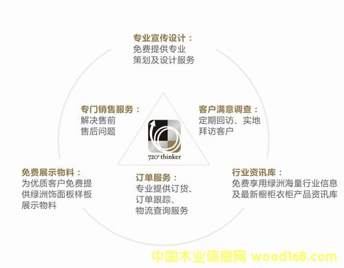 綠洲飾面板 720°thinker增值服務(wù) 服務(wù)升級(jí) 支持更多 近年,在國內(nèi)家具市場普遍低迷的情況下,綠洲飾面板業(yè)務(wù)量逆市不斷攀升。為感謝綠洲飾面板合作客戶的支持,綠洲飾面板深入了解家具廠家發(fā)展要求,提出“720°thinker增值服務(wù)”,旨在為綠洲客戶提供更高質(zhì)量的服務(wù),提供更多方面的合作與幫助。 綠洲飾面板“720°thinker增值服務(wù)”包括:提高目前客戶溝通渠道的服務(wù)質(zhì)量,如銷售環(huán)節(jié),配備專門服務(wù)的業(yè)務(wù)人員,提供售前問題咨詢與解答,訂單部分提供專門訂貨、訂單跟蹤、物流查詢服務(wù)。專業(yè)客戶經(jīng)理對客戶定期實(shí)地拜訪,了解客戶需求,解決售后問題。 綠洲在提升各項(xiàng)基礎(chǔ)服務(wù)質(zhì)量的基礎(chǔ)上,“720°thinker增值服務(wù)”還包括,在飾面板行業(yè)首次提出為廠家客戶及經(jīng)銷客戶提供各類免費(fèi)咨詢及策劃設(shè)計(jì)增值服務(wù)。綠洲飾面板客戶可共享綠洲的行業(yè)信息咨詢,每年展會(huì)展出及市場走訪采集的信息資訊,最新櫥柜衣柜產(chǎn)品樣圖。同時(shí)專業(yè)的市場人員為家具廠家及經(jīng)銷客戶免費(fèi)提供專業(yè)策劃及設(shè)計(jì)服務(wù),為優(yōu)質(zhì)客戶免費(fèi)提供綠洲飾面板樣板、產(chǎn)品圖冊、展柜等各類展示物料。