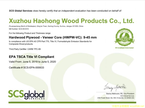 徐州浩宏木業(yè)有限公司于2019年6月取得了EPA證書,歡迎新老客戶前來咨詢、采購!