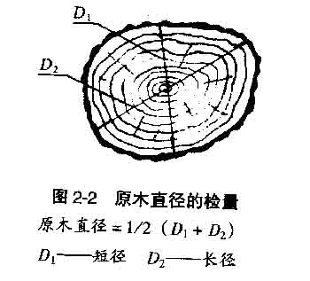 1.尺寸檢量 原木尺寸檢量包括原木長度檢量、原木直徑檢量和原木材積查定。計量單位均采用公制,長度以米(m)計,直徑以厘米(cm)計,材積以米3(m3)計。